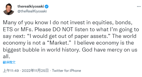 《富爸爸、穷爸爸》作者:经济是世界历史上最大的泡沫 将抛售所有账面资产
