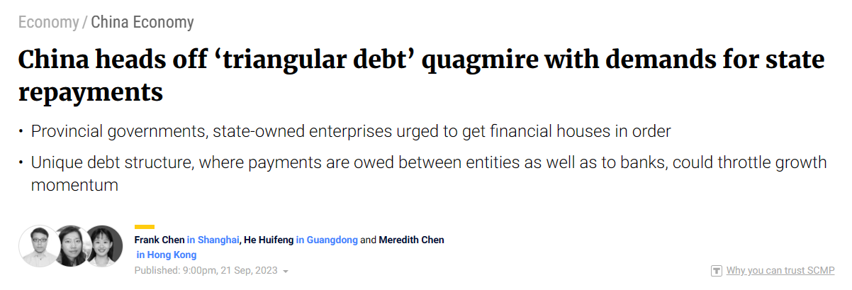 三角债务曾是上世纪90年代晚期大规模重组计划的主要动因,政府资本化银行以书面资产摆脱债务。这一现象不受欢迎地回归了,《南华早报》称其是大流行导致的经济放缓和国有企业在关键产业重新崭露头角的副产品。