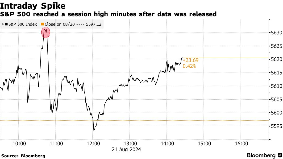 数据一经公布,交易量就激增。在纽约时间周三上午10点30分至10点35分(美国劳工统计局最终发布最新数据)期间,约有20,000单标普500指数期货合约易手,较之前5分钟激增58%。标普500指数跳涨,随后回吐涨幅,而债券继续上涨。
