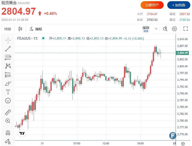 美国PCE数据公布后,现货黄金短线波动不大,现报2804.97美元/盎司。