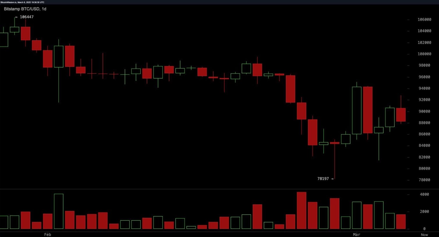 移动平均线(MA)凸显短期看跌情绪和长期乐观情绪。指数移动平均线(EMA)(10)为89039美元,EMA(20)为91035美元,发出卖出信号,而简单移动平均线(SMA)(10)为87381美元,则发出买入信号。长期SMA(200)和EMA(200)分别位于82891美元和85801美元,显示看涨偏见。短期交易者可能倾向于92000美元附近的阻力位,而长期持有者可能将逢低视为积累区。