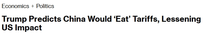 彭博社报道,特朗普表示,中国应得他对其出口产品征收的高额关税,并预测中国方面会找到减少其对美国消费者影响的方法。