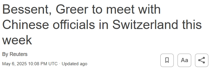 路透社报道,贝森特和格里尔将于本周晚些时候在瑞士会见中国最高经济官员,这两家美国机构周二表示,这标志着就特朗普的关税攻击进行潜在谈判迈出了第一步。
