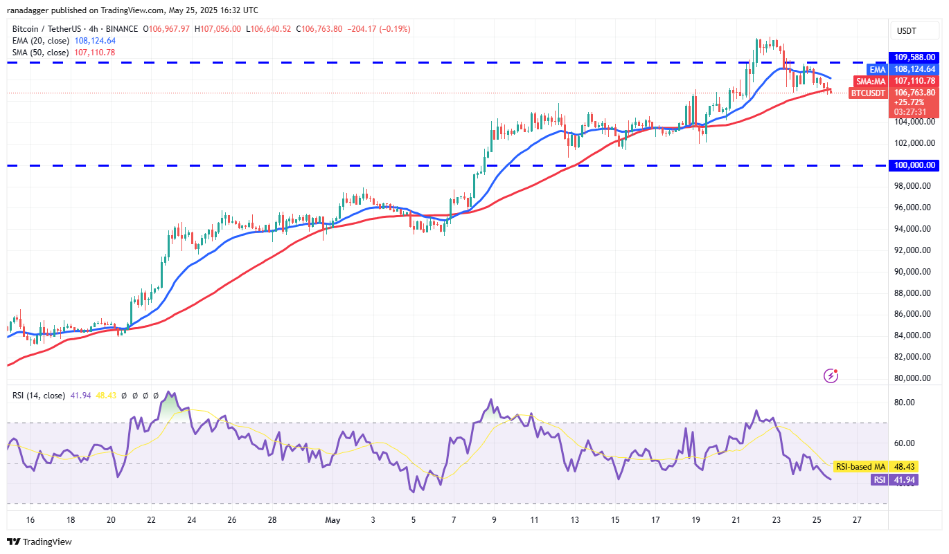 多头将再次尝试将价格推高至109588美元至111980美元的上方阻力位。如果成功突破,比特币可能反弹至13万美元的目标位。20日指数移动平均线(20-EMA)的104199美元是短期内需要关注的关键水平。