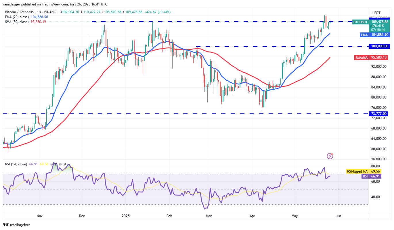 CoinTelegraph指出,比特币多头正试图推动价格上涨并维持在109588美元以上,这表明每一次小幅下跌都将被买入。
