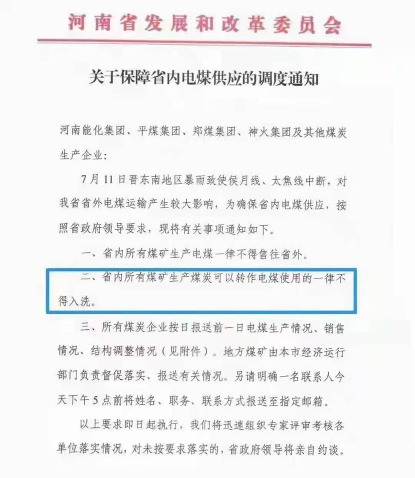 据市场消息称,河南省发改委日前发文称,为确保省内电煤供应,按照省政府领导要求: