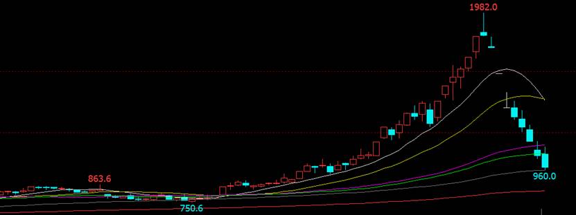 自10月19日触及历史高位1982美元以来,在政策面消息的推动下,动力煤价格迅猛下跌,在短短9个交易日内暴跌超50%,目前逼近关键的100日均线支撑。今年迄今的涨幅已经缩减至20%左右。