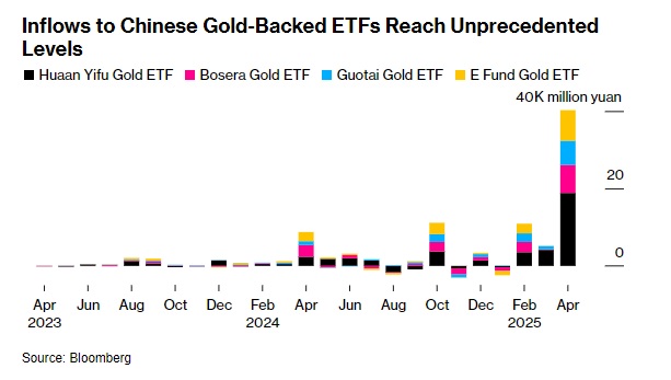 随着金价波动,日内交易量出现大幅飙升的迹象,人民币黄金期货价格也出现了创纪录的波动,交易员们正努力应对贸易战带来的各种波折。与此同时,流入交易所交易基金(ETF)的资金激增,零售活动激增,本地溢价出现缺口。