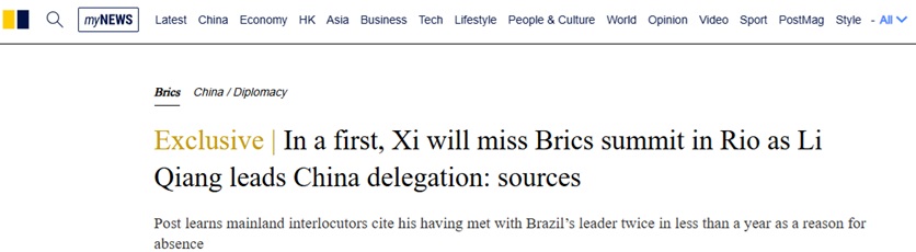 FX168财经报社(亚太)讯 香港《南华早报》周三(6月25日)发布独家报道称,《南华早报》周二从多方消息来源获悉,中国国家主席习近平将缺席下周在里约热内卢举行的金砖国家峰会,这是他首次缺席这一主要新兴经济体峰会。