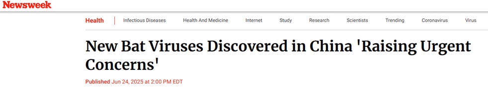 FX168财经报社(亚太)讯 美国《新闻周刊》周二(6月24日)报道称,中国在蝙蝠体内发现了20种新病毒,这“引发了紧急担忧”,人们担心这些疾病可能会蔓延到牲畜甚至人类。