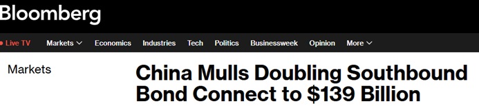 FX168财经报社(亚太)讯 美国彭博社周一(7月7日)发布独家报道称,据知情人士透露,中国监管机构正考虑将“债券通”(Bond Connect)南向通额度翻倍,扩大本地投资者配置离岸债的空间,彭博社称,这是中国进一步放宽资本流动限制的重要一步。