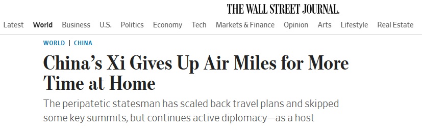 报道指出,这位中国历史上出访最多的领导人近年来已减少海外访问,外交行程不再那么密集,而此前频繁的外交行程曾塑造他作为一位环球政治家的声誉。