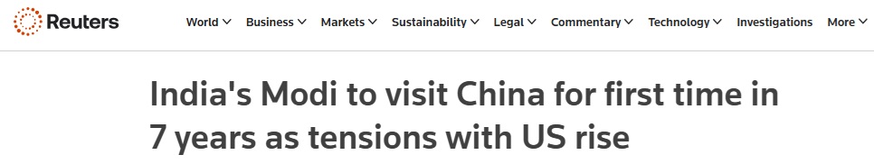 一位直接了解情况的政府消息人士告诉路透社,莫迪将前往中国参加8月31日开幕的多边上海合作组织峰会。上海合作组织是一个欧亚政治和安全组织,包括俄罗斯。