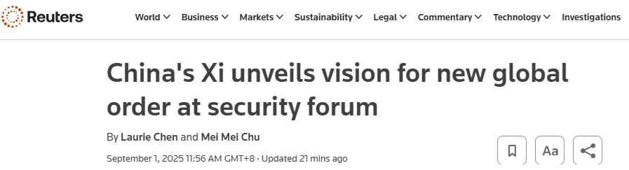 中国突发重磅!路透:国家主席习近平在安全论坛上阐述全球新秩序愿景