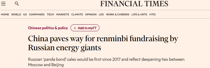 FX168财经报社(亚太)讯 英国《金融时报》周日(9月7日)报道称,中国正准备向俄罗斯主要能源公司重新开放国内债券市场,这一政策转变反映了北京和莫斯科之间不断深化的外交和经济关系。
