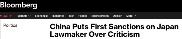 FX168财经报社(亚太)讯 美国彭博社周一(9月8日)报道称,中国首次对日本议员实施制裁,此举可能会加剧中日关系紧张。