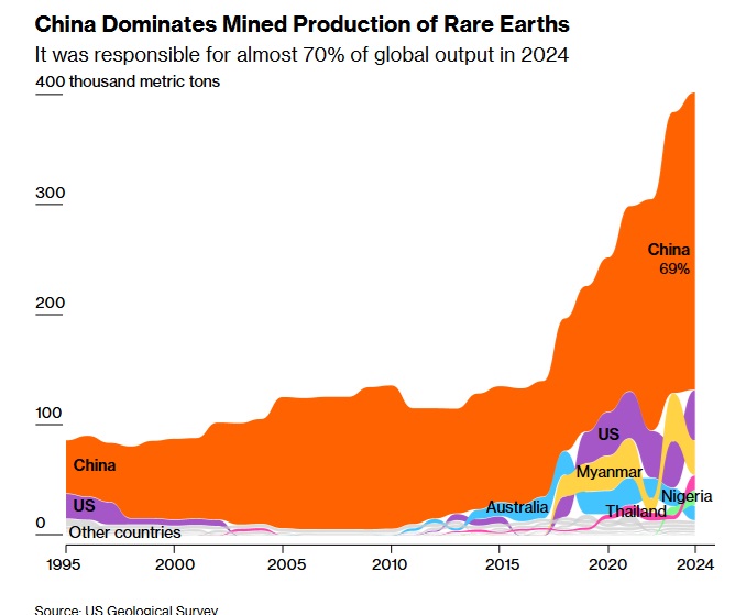 FX168财经报社(亚太)讯 美国彭博社周三(10月15日)报道称,中国对稀土出口实施的全面新限制令各国政府震动,并引发了一场争夺替代供应的竞赛——这清楚地展示了北京方面在全球范围内的影响力,以及各家公司面临的日益增长的风险。