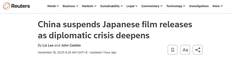 这一延期发生在日本首相高市早苗(Sanae Takaichi)关于台湾的相关言论引发中国强烈反应、并导致两国多年来最严重的外交冲突爆发后的不到两周时间。