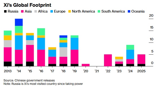 曾经出访次数超过美国总统的习近平,如今更倾向于北京所称的“主场外交”。今年夏天在连续举行的阅兵式和安全峰会上,习近平在未离开中国的情况下,与普京、莫迪以及朝鲜领导人金正恩等人进行了引人瞩目的合影与会晤。活动结束后,官方媒体《人民日报》刊登了一篇特写,详细介绍习近平紧凑的六天行程,显然意在回应外界关于他在阅兵仪式期间显得疲惫的批评。