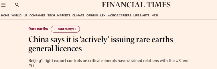 中国首次释放关键信号!英国金融时报:中国称正“积极”发放稀土通用许可