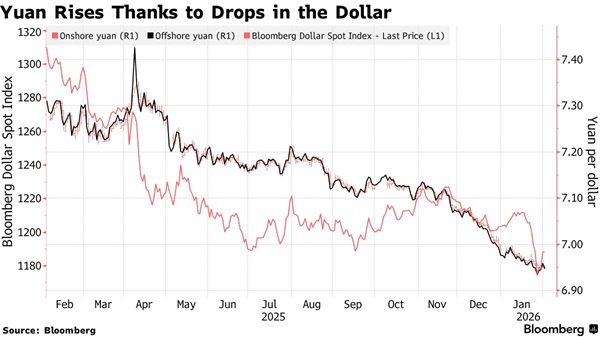 人民币走强既反映了美元走弱,也体现出投资者押注人民币被显著低估。