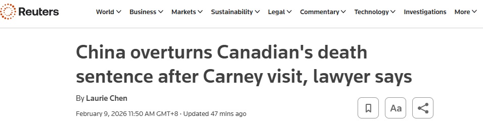 中加突传重大消息!路透:中国在卡尼访问后推翻加拿大人死刑判决