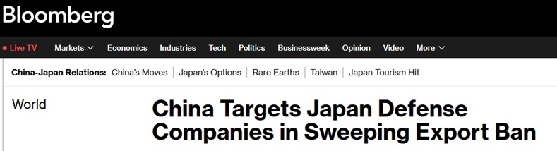 据周二(2月24日)发布的一份声明,中国商务部已将这些公司立即列入出口管制清单。该认定禁止出口商向日本部分最大防务承包商供应“两用物项”——即同时具有民用和军用用途的商品。同时,也禁止海外实体向这些公司提供源自中国的两用技术。