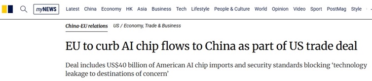 中欧突发消息!作为与美国贸易协议的一部分 欧盟将限制人工智能芯片流向中国