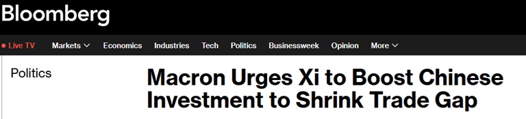 FX168财经报社(亚太)讯 美国彭博社周五(12月5日)报道称,法国总统马克龙(Emmanuel Macron)在与中国国家主席习近平会晤时,敦促中国加大投资。巴黎方面希望重新平衡与北京的经济关系,并缩小长期存在的贸易逆差。