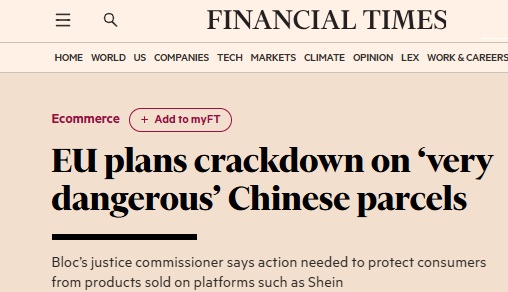 FX168财经报社(亚太)讯 英国《金融时报》周日(12月14日)发布独家报道称,欧盟司法事务专员迈克尔•麦格拉斯(Michael McGrath)表示,欧盟计划对包括中国的希音(Shein)和阿里巴巴(Alibaba)在内的在线平台上销售的“非常危险”产品展开严厉整治,并坦言“我们需要做得更好”来保护欧洲消费者。