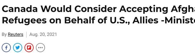 FX168财经报社(北美)讯 据乐活网报道,移民部长Marco Mendicino上周五最新表示,加拿大将考虑代表美国或其他盟国接收更多的阿富汗难民。此前,加拿大宣布接收两万阿富汗难民,部分已分批抵达加拿大。