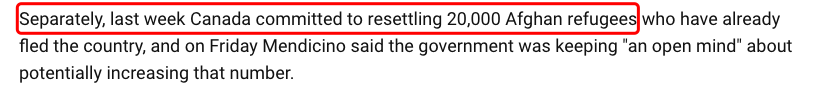 加拿大是国家联盟的一部分,多年来曾试图撤离支持西方在阿富汗执行任务的阿富汗公民,但近日,塔利班在几天内迅速接管了阿富汗,而不是像预期的那样在数月后接管,使得当地教育等公共设施瘫痪。