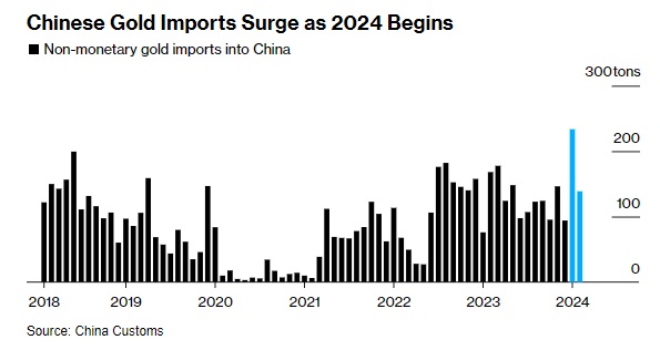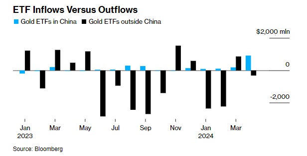 不断恶化的地缘政治紧张局势(包括中东和乌克兰的战争),以及美国利率下调的前景,都为黄金的投资价值增光添色。但推动金价上涨的是中国强劲的需求,零售消费者、基金投资者、期货交易员甚至中国央行都将黄金视为不确定时期的保值手段。