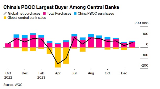 在众多青睐黄金的央行中,中国央行是最热心的买家。去年,中国官方部门抢购了接近创纪录水平的黄金,预计2024年将继续保持高购买量。