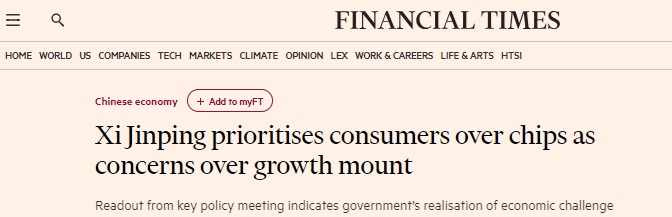 FX168财经报社(亚太)讯 英国《金融时报》报道称,随着对经济增长的担忧加剧,中国国家主席习近平将消费者置于芯片之上。报道指出,中国政府已将其经济重点转移到刺激国内需求上,将重点从投资于帮助中国成为出口大国的技术和工业上转移开。