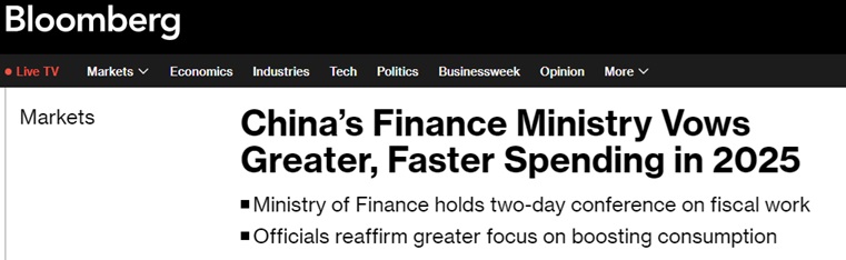 会议指出,2025年要实施更加积极的财政政策,持续用力、更加给力,打好政策“组合拳”。