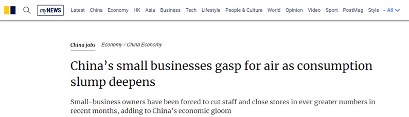 中国重大信号!南华早报:消费降级席卷中国经济 越来越多小企业裁员、关门