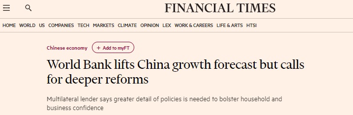 中国突发重磅!世界银行显著上调中国明年GDP预期 但呼吁中国领导人进行深入改革