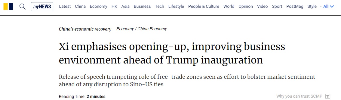 这一信息包含在中国最新公布的国家主席习近平的讲话中。五天之后,特朗普(Donald Trump)将就任美国总统,开始他的第二任期。预计特朗普的就职将从第一天起就扰乱中美关系。