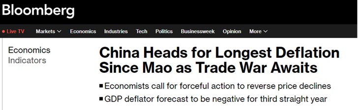 FX168财经报社(亚太)讯 美国彭博社周四(1月16日)报道称,分析人士说,中国未能打破通货紧缩循环,目前正处于自上世纪60年代以来最长的经济整体价格下降周期之中,这暴露了经济关键的脆弱点,而这一问题可能在去年年底的经济增长中被掩盖。
