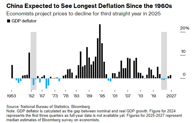 多数经济学家认为,定于周五公布的官方数据将显示,2024年通缩将连续第二年持续。一些主要的华尔街银行,包括摩根大通(JPMorgan Chase & Co.)和花旗集团(Citigroup Inc.),预测通缩可能会持续到2025年。这种情况自上世纪60年代以来未曾见过。