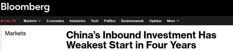 FX168财经报社(亚太)讯 美国彭博社周四(2月20日)报道称,中国的外来投资创下四年来最疲软的开局,1月份外国公司在中国的新投资刚刚超过130亿美元。