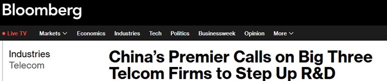 FX168财经报社(亚太)讯 美国彭博社周三(2月26日)报道称,中国总理李强要求中国三大电信公司加大研发力度,以支持更广泛的创新和经济增长——这突显出在中美关系紧张的背景下,北京方面正努力实现更大程度的自给自足。