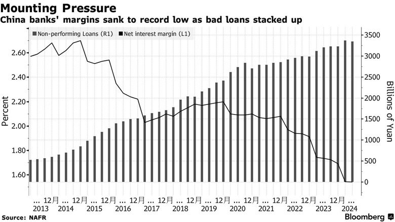 过去几年来,农业银行和邮政储蓄等银行一直被要求支持经济,但现在它们正面临着创纪录的低利润率、利润下滑和坏账增加的问题。