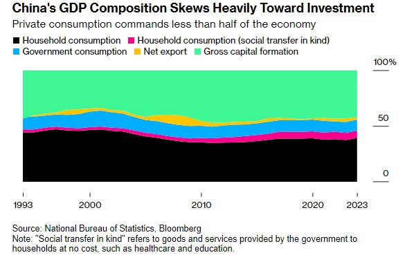 然而,彭博社指出,习近平面临的更大挑战,除了拨出资金让人们用消费品换新车和智能手机之外,还在于调整政府结构,使其更有利于消费,而不是投资。