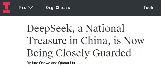 中国突传重磅消息!“国宝”DeepSeek目前受到严密保护 关键员工的护照被没收