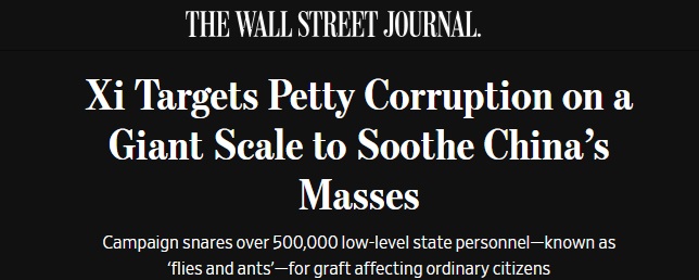 中国突传重磅!华尔街日报:习近平大规模整治基层腐败 经济低迷之际安抚民心