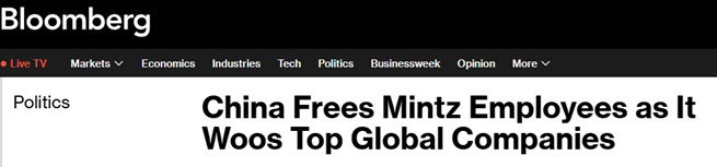 美国彭博社周二报道称,中国释放了2023年被拘留的五名美思明智员工,这显然是在海外投资大幅下降的情况下赢得外国公司青睐的举措。