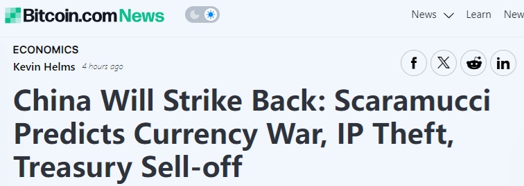 Scaramucci在回复中详细阐述了五点预测。他表示:“第一点永远不会发生,”他排除了中国会屈服于特朗普的条件的可能性。他接着说:“第二点和第三点即将到来”,他指的是人民币贬值和大规模刺激措施是可能的应对措施。Scaramucci还补充了另外两个预期结果:“第四点,他们将抛售美国国债。第五点,他们将加速知识产权盗窃。”