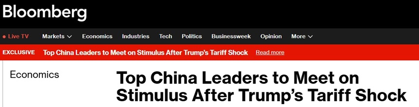突发大消息!彭博:特朗普关税冲击后 中国高层领导人今日将开会讨论额外刺激措施